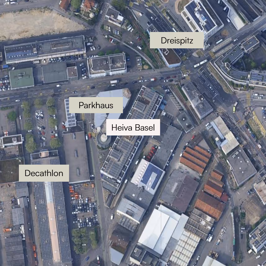Der Eingang befindet sich direkt zwischen dem Parkhaus und unserem Gebäude