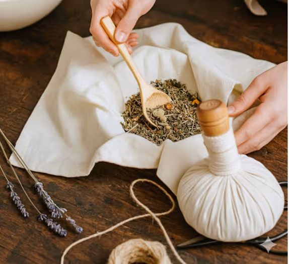 Die Kräuterstempelmassage verbindet Wärme mit der Wirkung ausgewählter Heilkräuter. In Stoffbeuteln erhitzte Kräuterstempel werden mit sanften Druck- und Streichbewegungen über die Haut geführt. Die Wärme entspannt tief, die Kräuter entfalten ihre wohltuenden Aromen, fördern die Durchblutung und regen den Stoffwechsel an.